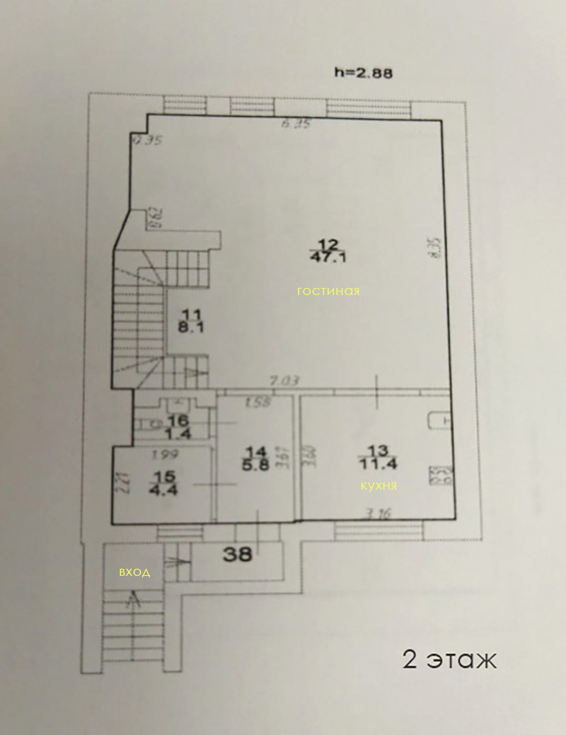 2 этаж: большая гостиная 47 кв.м и кухня, с/у. Есть отдельный вход со двора.