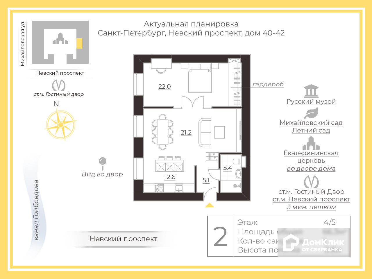 1-комнатная квартира, 66.3 м2, этаж 4 / 4, на продажу в Санкт-Петербурге, Невский проспект, 40-42