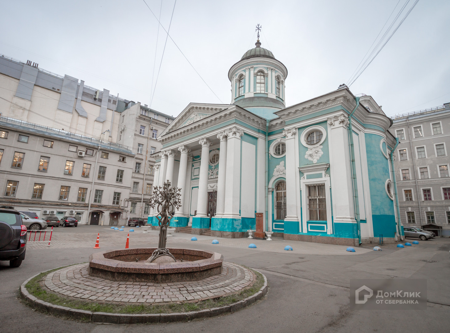 -Окна с видом на фонтан и Церковь.