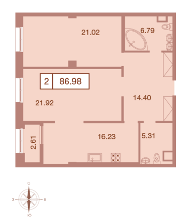 Общая площадь 87 м2