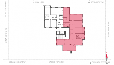 5-комнатная квартира, 242 м2, этаж 9 / 9, на продажу в Санкт-Петербурге, Басков переулок, 2