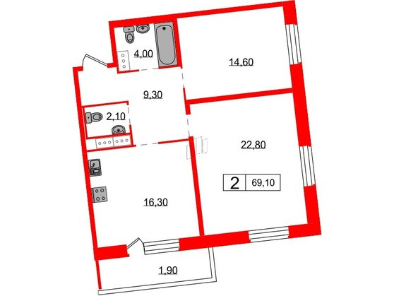 Общая площадь 69 м2