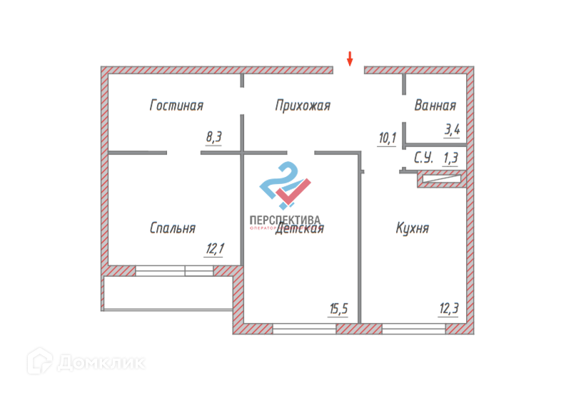 - Квартира по плану двухкомнатная.