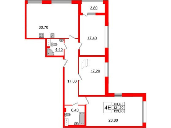 Общая площадь 123 м2