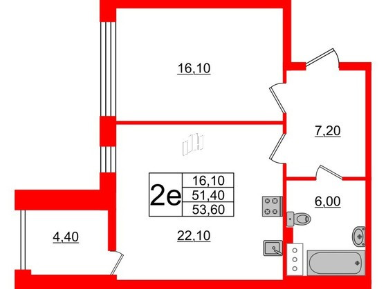 Общая площадь 53 м2