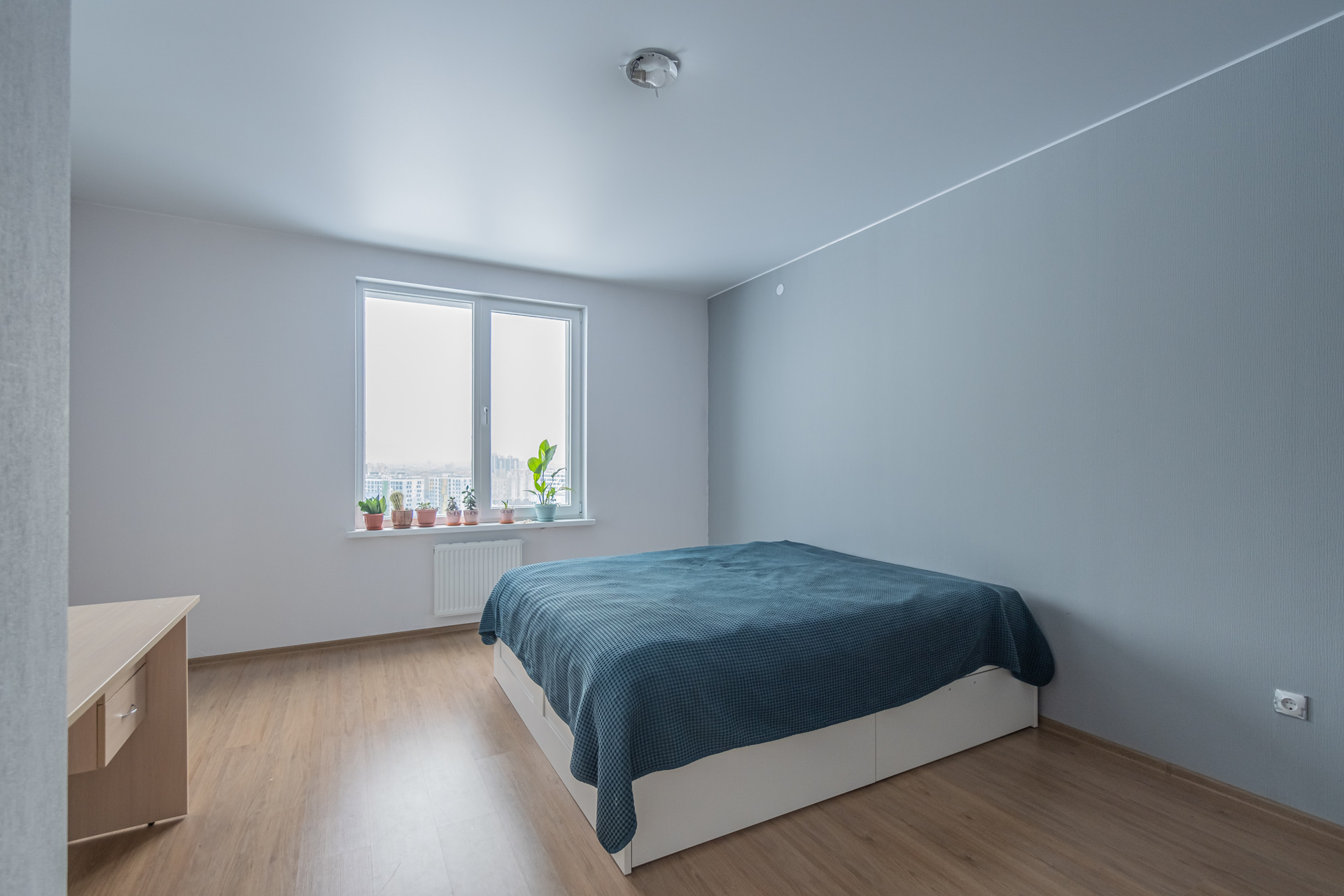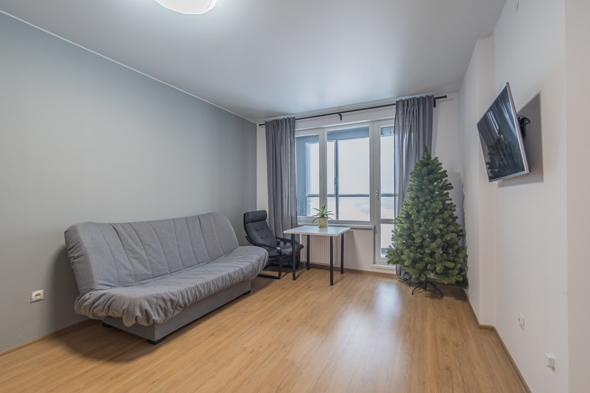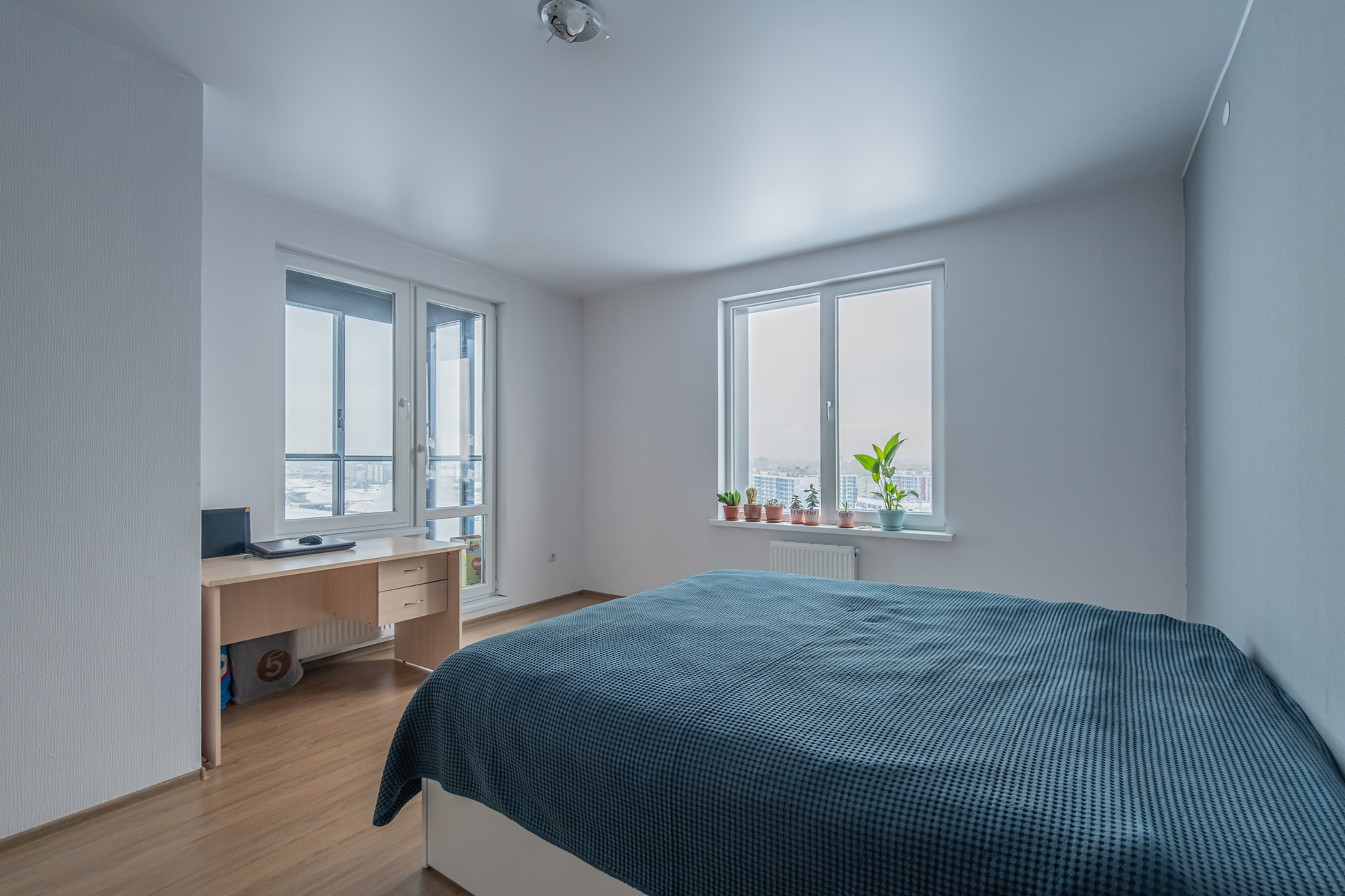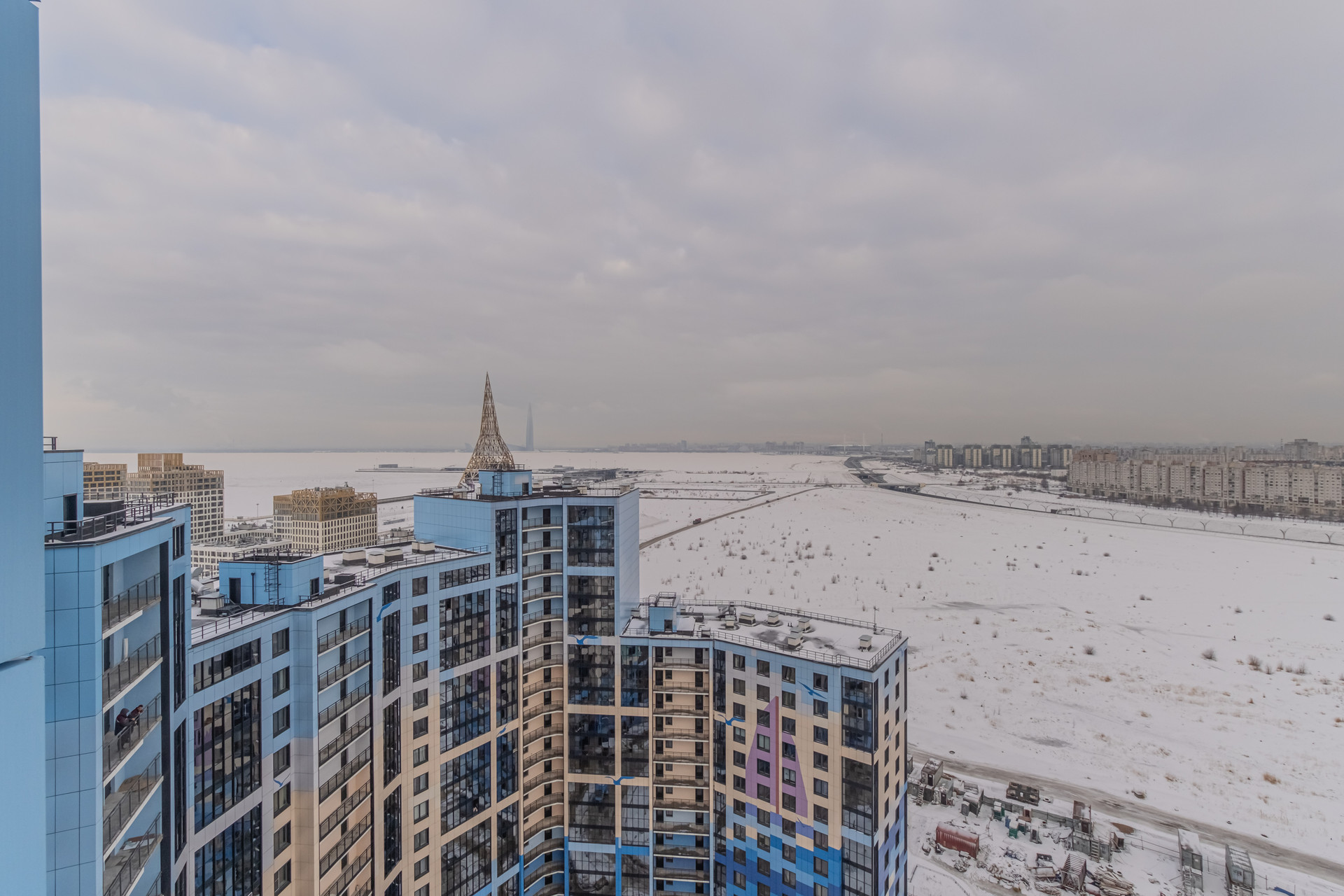 Окна выходят в тихий спокойный двор и виден новый стадион Газпром арена, башня Лахта центра и потрясающий ночной Петербург.