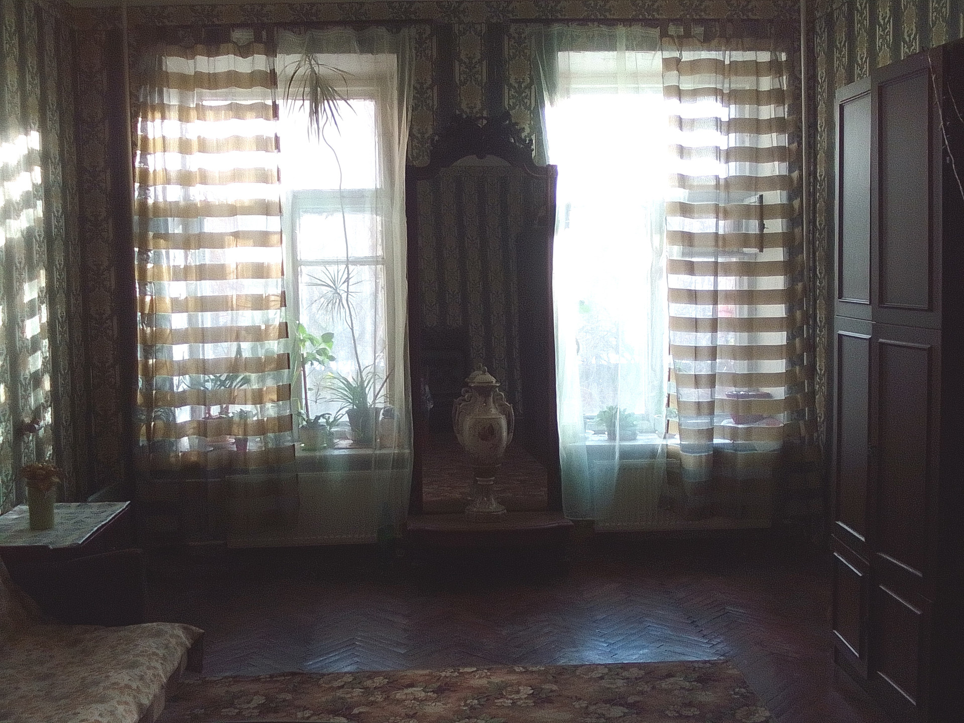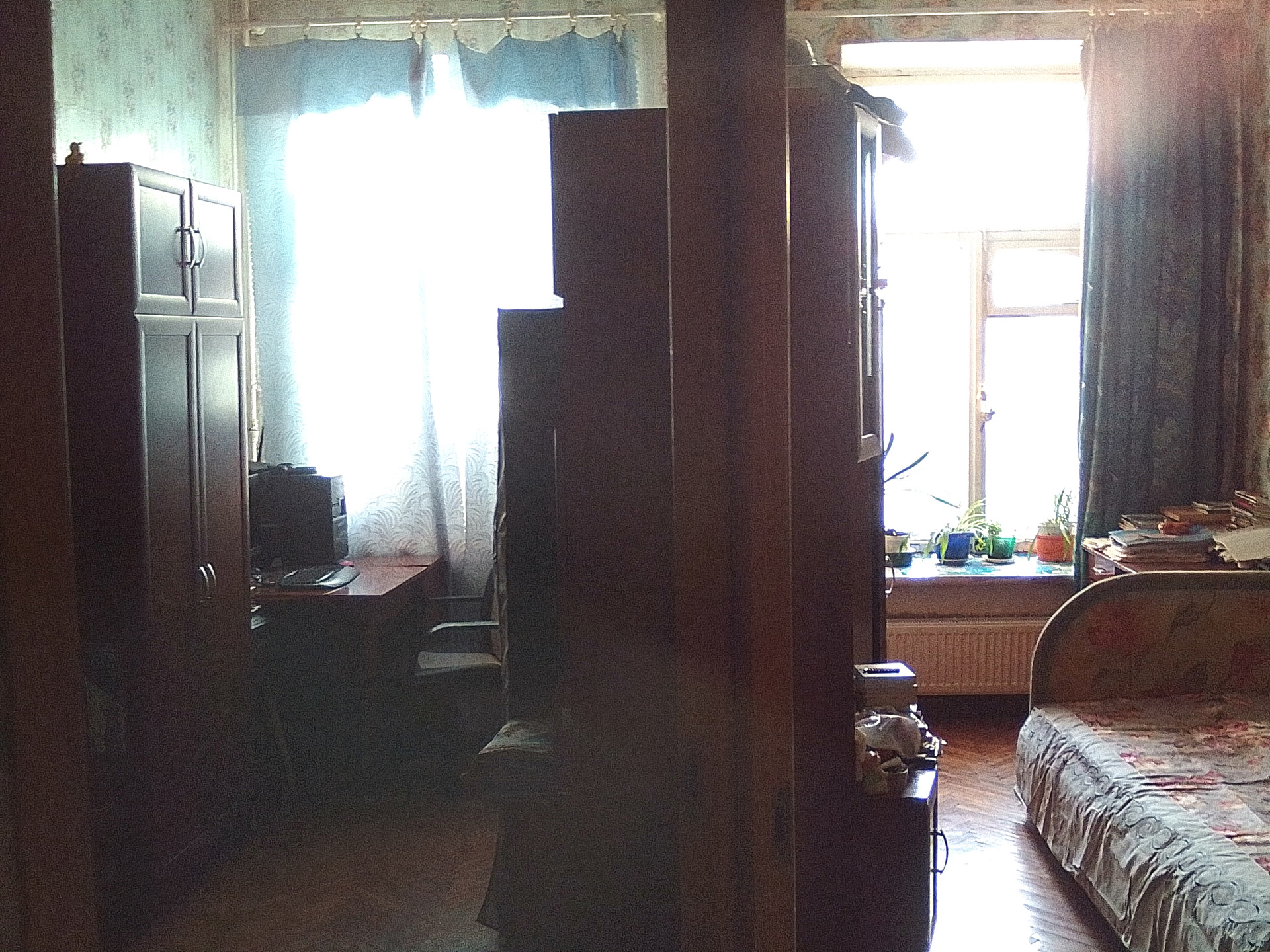 Квартира теплая, солнечная, светлая. В изолированных комнатах по два больших окна, которые выходят на юго-восток в большой светлый двор с зеленью. Весной под окнами цветет сирень и вишня. Комната 22.4 м в настоящее время разделена на две комнаты, но при желании покупателя перегородка будет демонтирована продавцом до передачи квартиры. Перегородка не влияет на несущие конструкции и зафиксирована в техпаспорте как "временная перегородка", т.е. не помешает одобрению квартиры банком. Год назад в доме и квартире произведен капитальный ремонт (полная замена!) инженерных сетей холодного и горячего водоснабжения, водоотведения,канализации и отопления (с заменой радиаторов; радиаторы импортные, покупали сами).