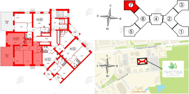 Жилой комплекс бизнес?класса «Листва» расположен в Выборгском районе Санкт?Петербурга – в шаговой доступности от одного из самых крупных парков города – Сосновки.