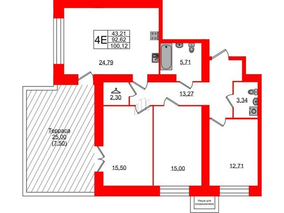 3-комнатная квартира, 100 м2, этаж 12 / 13, на продажу в Санкт-Петербурге