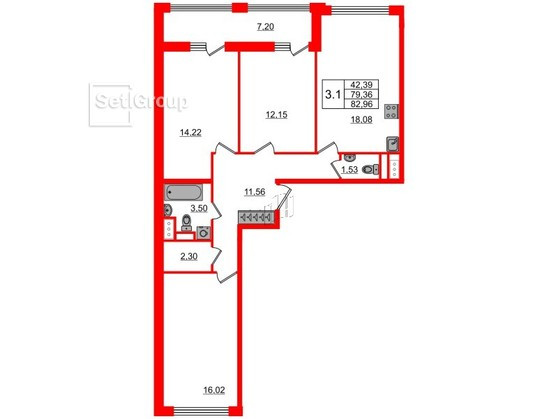 Общая площадь 82 м2