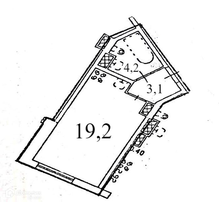 Жилая площадь 19.2 м2, типовой ремонт, на кухне есть мебель, интернет, совмещенных санузлов - 1.