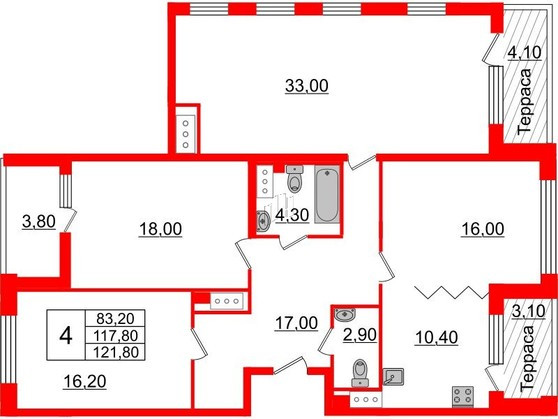 Общая площадь 121 м2