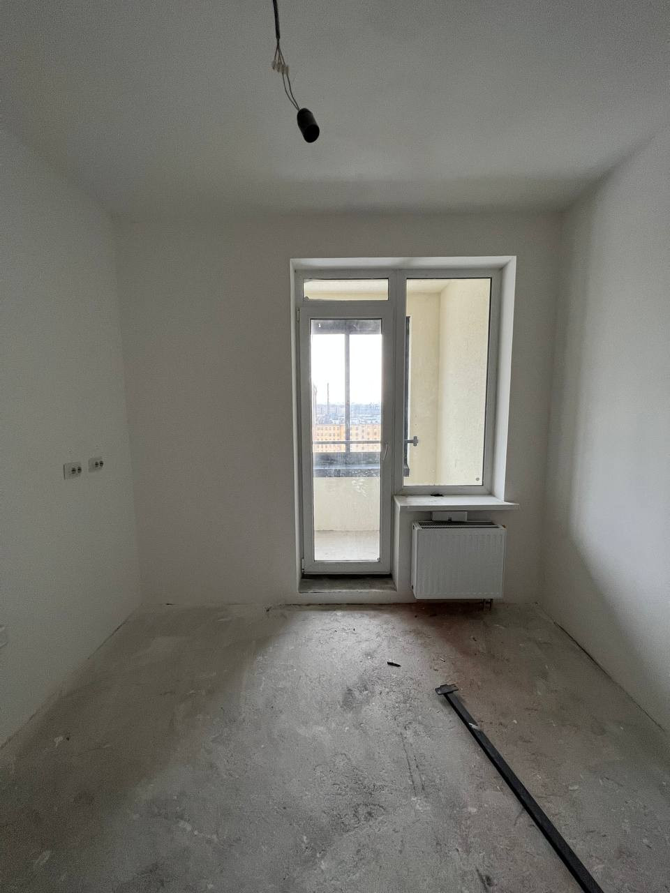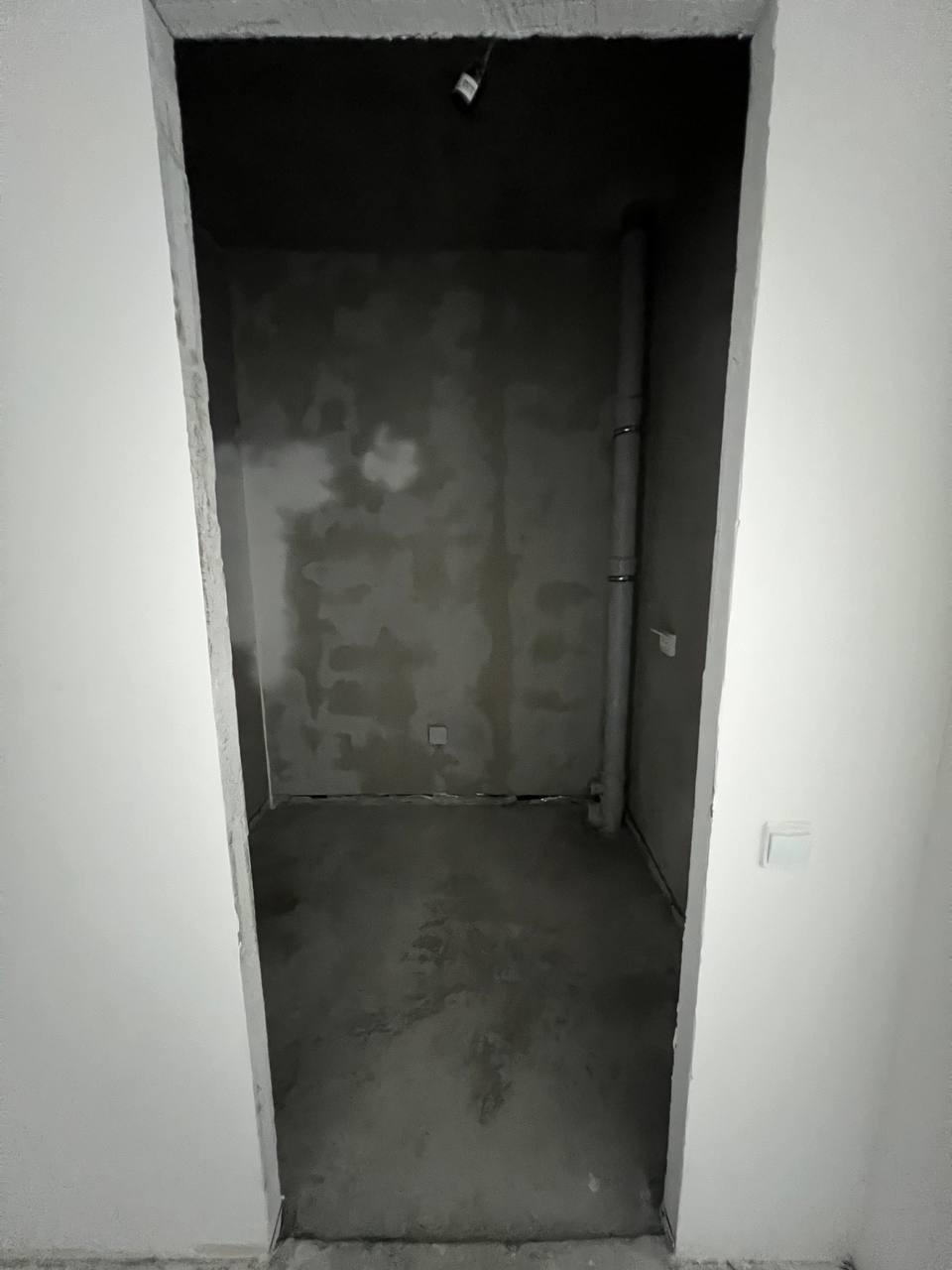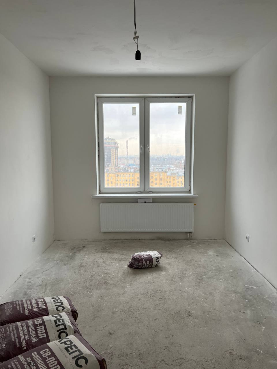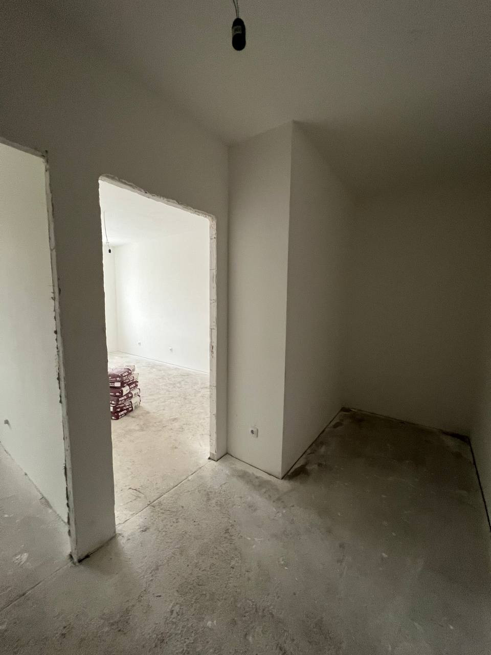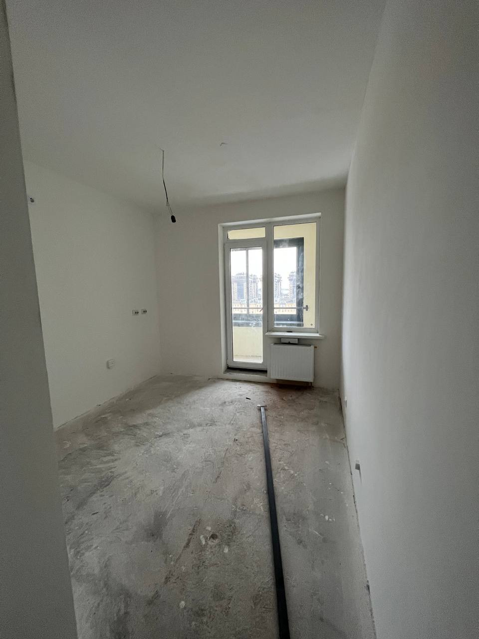 - Выполнена предчистовая отделка: выровнены стены, на полу стяжка, сделана разводка электричества;