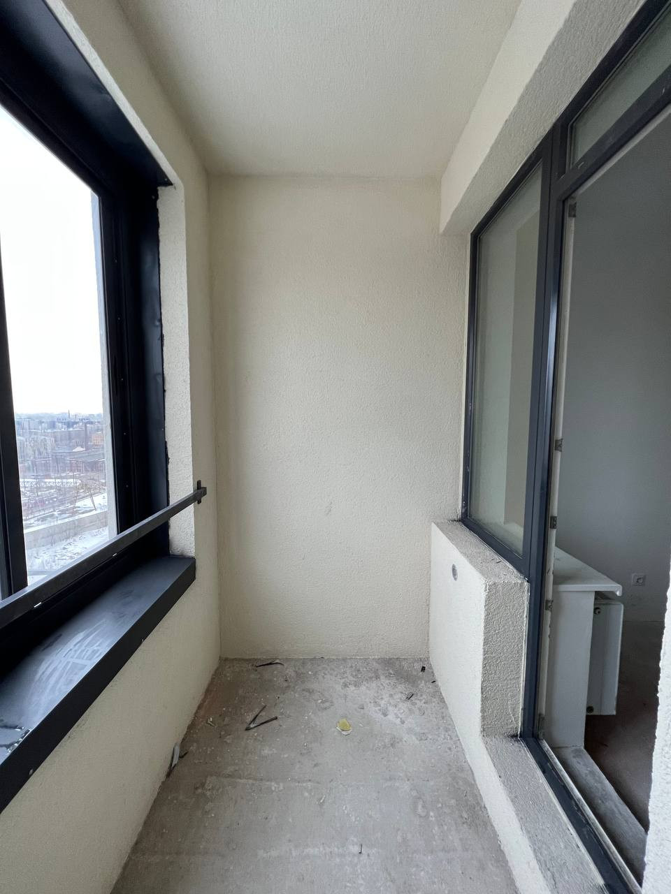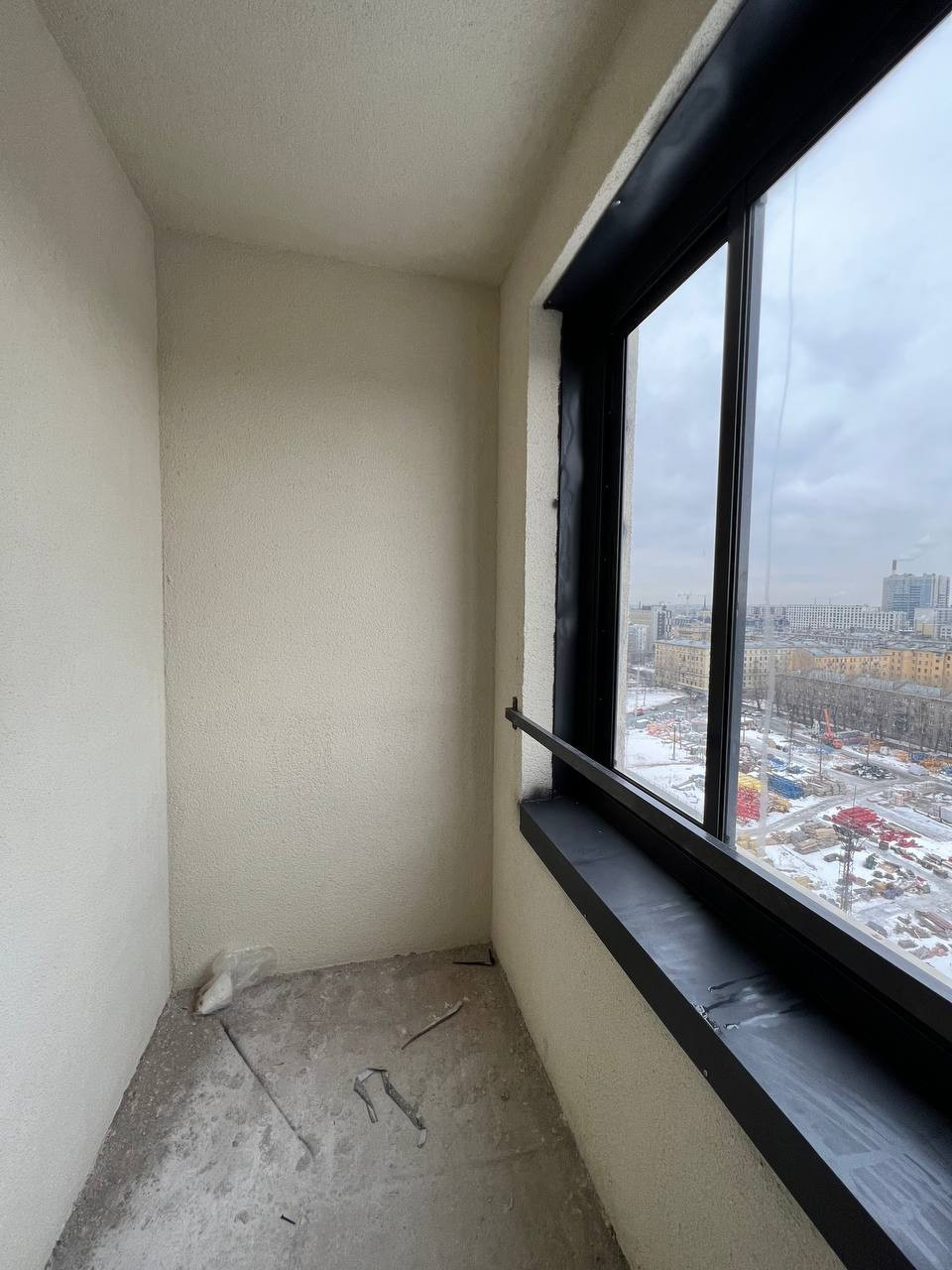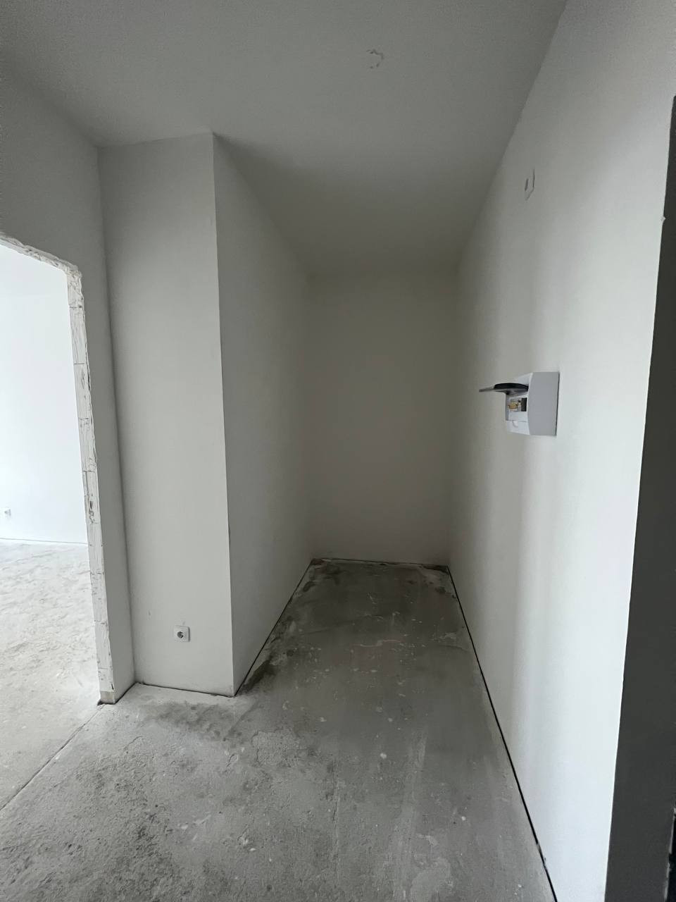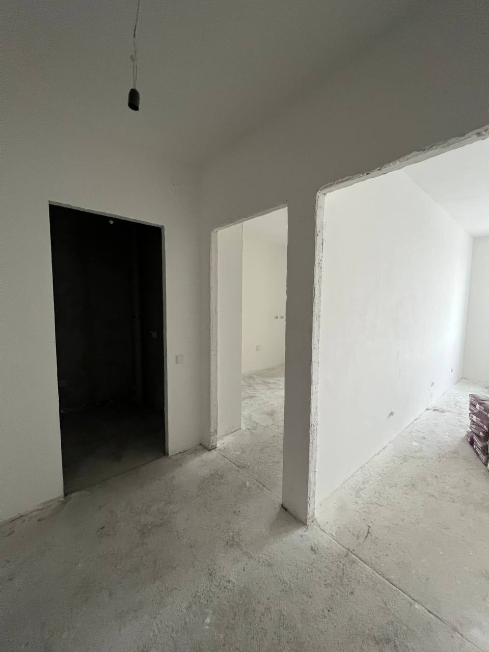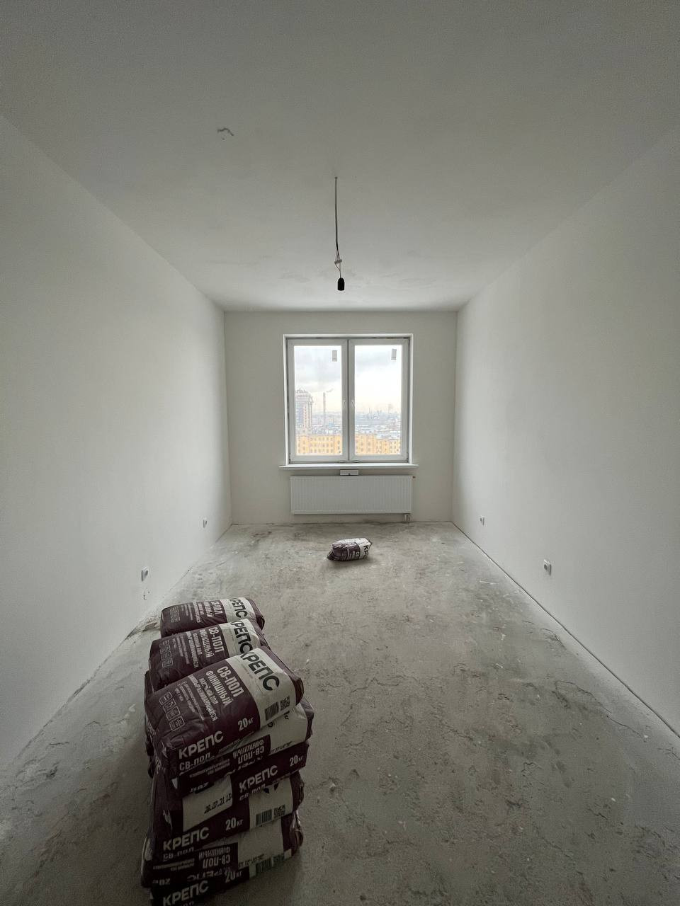 - Выполнена предчистовая отделка: выровнены стены, на полу стяжка, сделана разводка электричества;