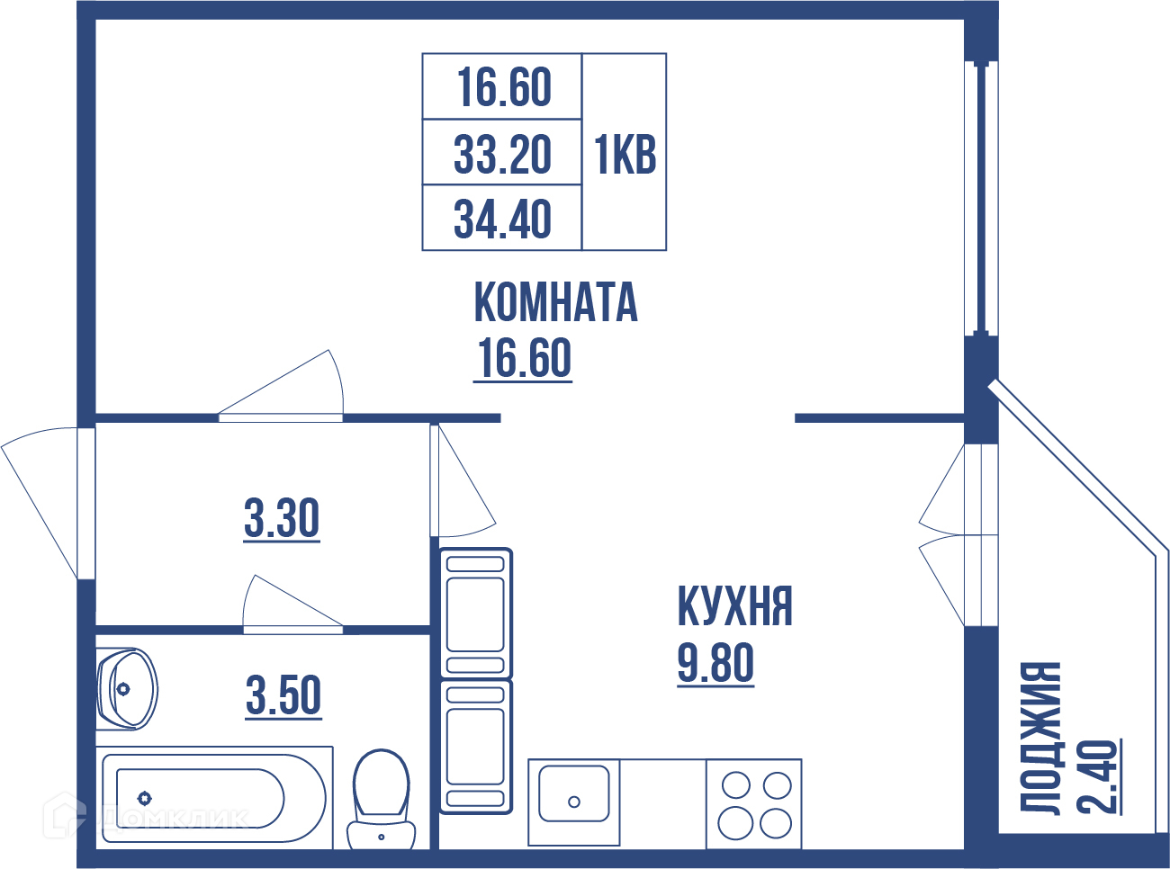 Общая площадь 34.4 м2
