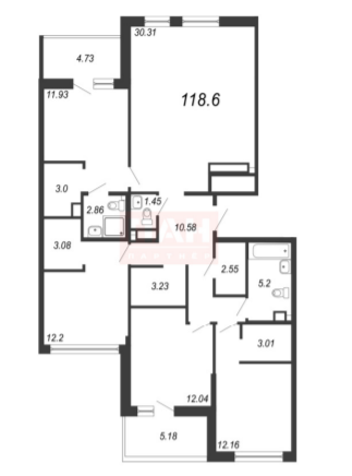 Общая площадь 118.6 м2