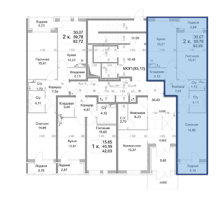 Общая площадь 65.82 м2