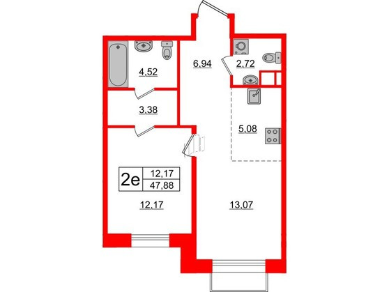 Общая площадь 48 м2