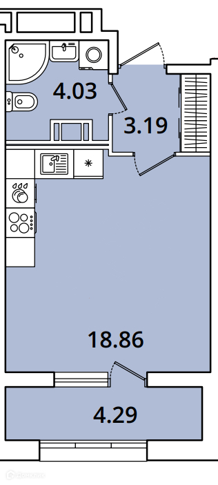 Балкон, лоджия 1 лоджия