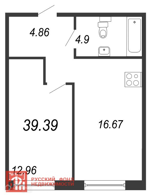 Общая площадь 39.39 м2
