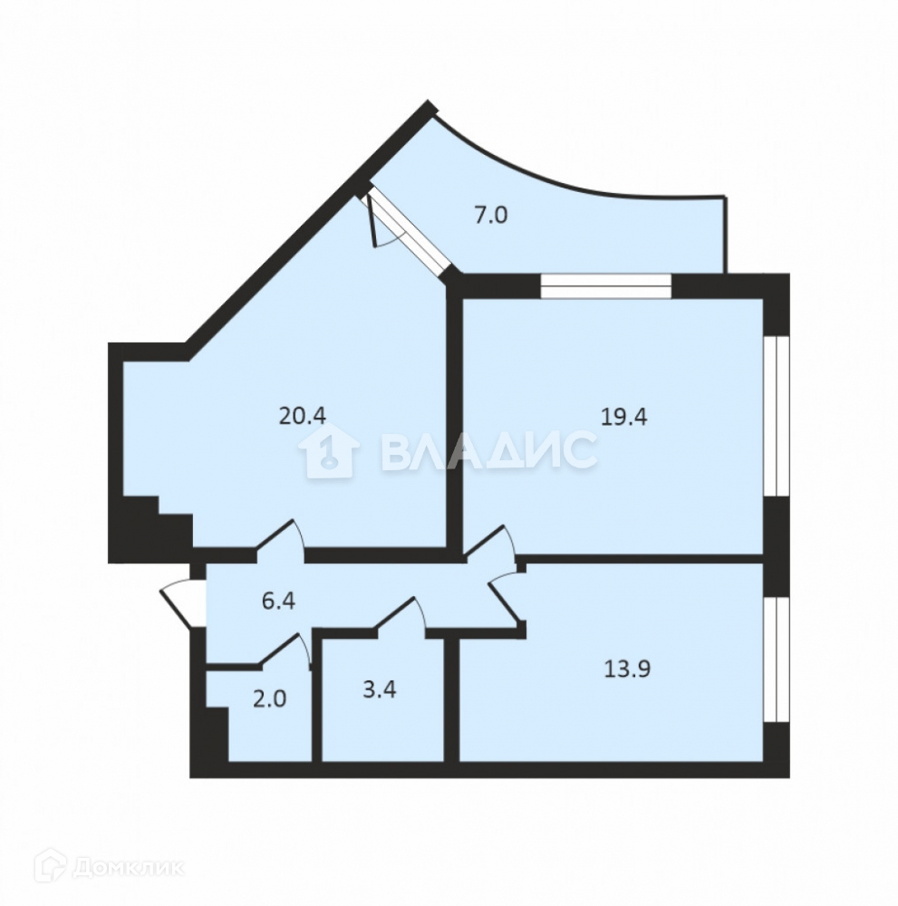 Жилая площадь 33.3 м2