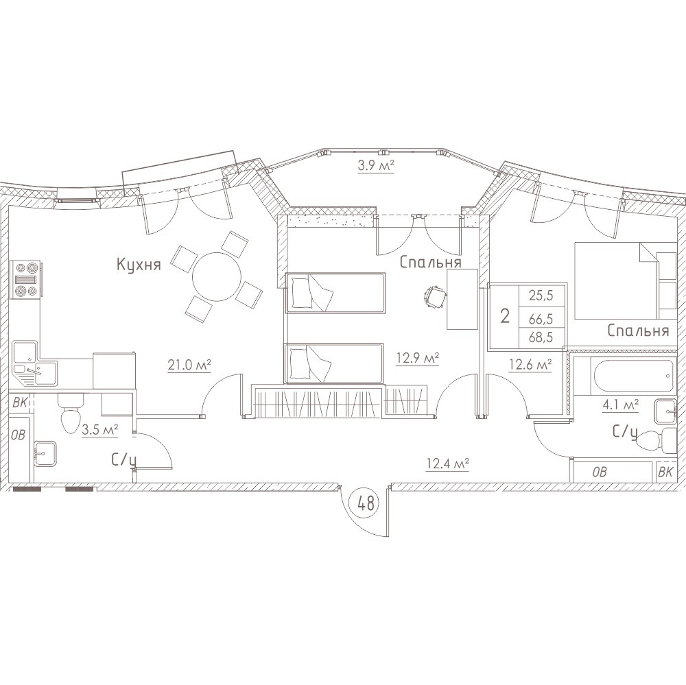 Общая площадь 66.5 м2