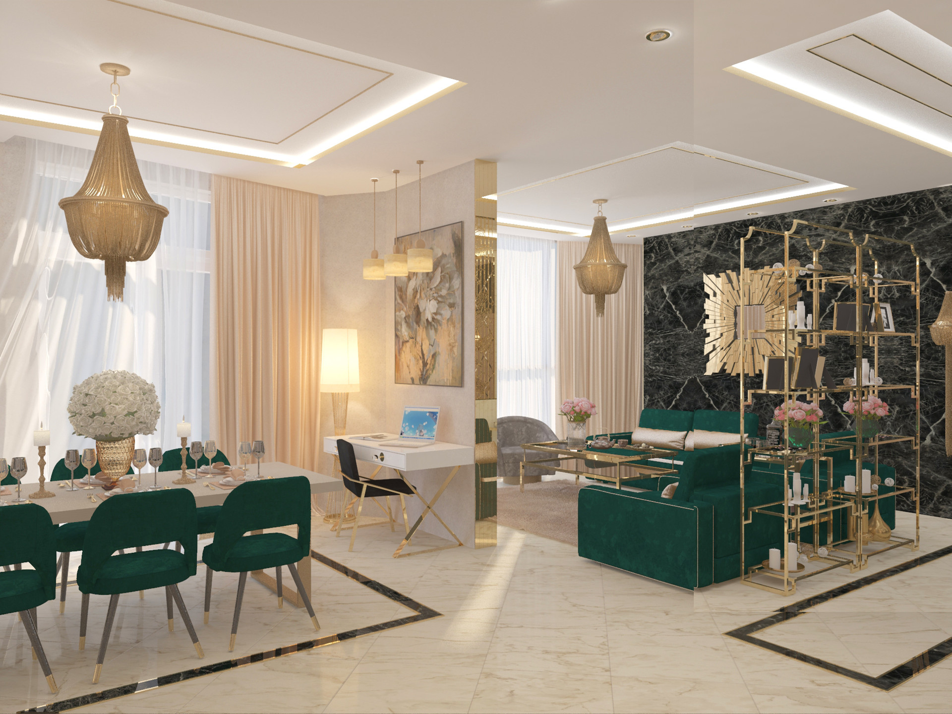 Просторная евро-трехкомнатная квартира «Эшампле»  пл.  66,5  со светлой кухней-гостиной пл. 19 кв. м и двумя отдельными спальнями. Из ее панорамных окон открывается вид на закрытую придомовую территорию с ландшафтным парком в лучших традициях испанских садов. Функциональный холл позволяет разделить квартиру на приватную и гостевую зоны, при этом в каждой из них будет своя ванная комната.