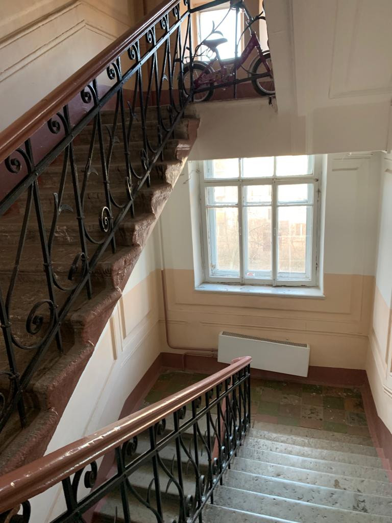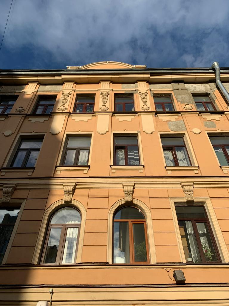 Дом 1903 г. п. Расположен в тихом месте Васильевского Острова. Во дворе детская площадка. Ухоженная придомовая территория. На первом этаже продуктовый магазин и кафе. Тихие доброжелательные соседи.