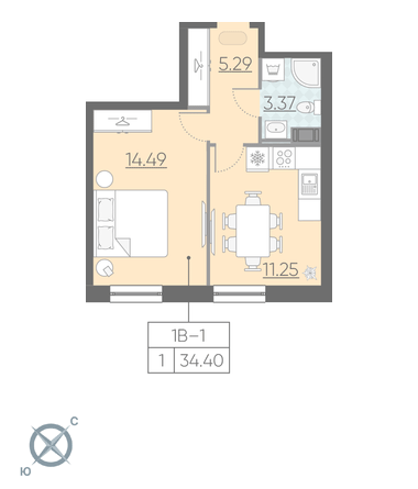 Количество комнат 1