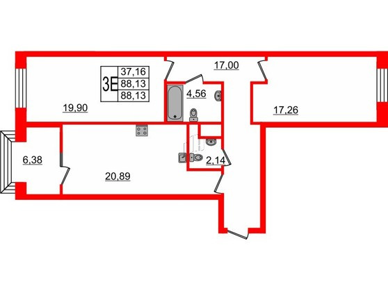 Общая площадь 88 м2