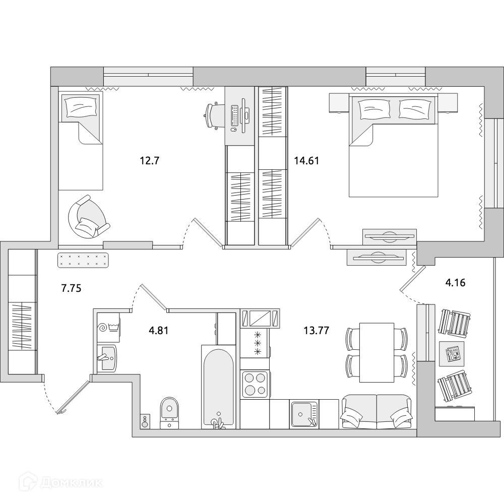 Общая площадь 57.8 м2