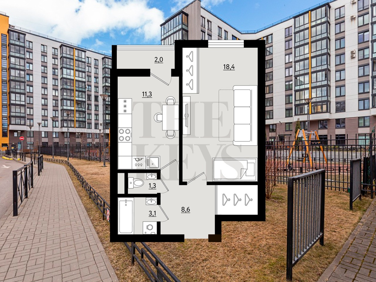 Жилая площадь 18.4 м2