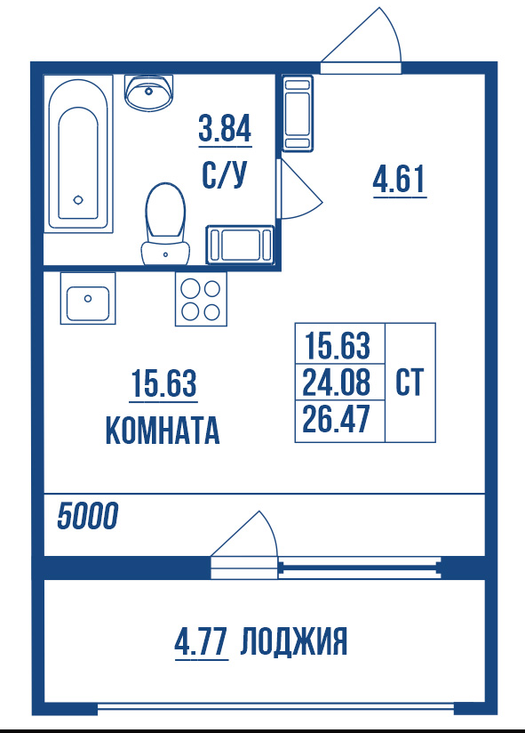 Продаётся студия 28.85м2 ( 24.08м2 + 4.77м2 лоджия) в ЖК « ТЕРРА»
