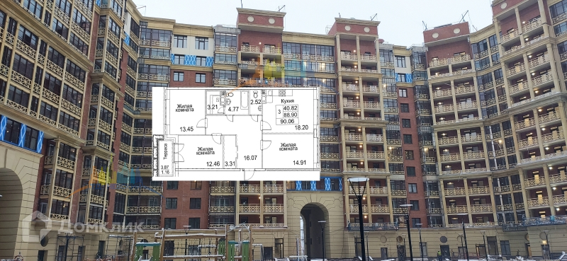 3-комнатная квартира, 90.06 м2, этаж 12 / 12, на продажу в Санкт-Петербурге, Плесецкая улица, 6