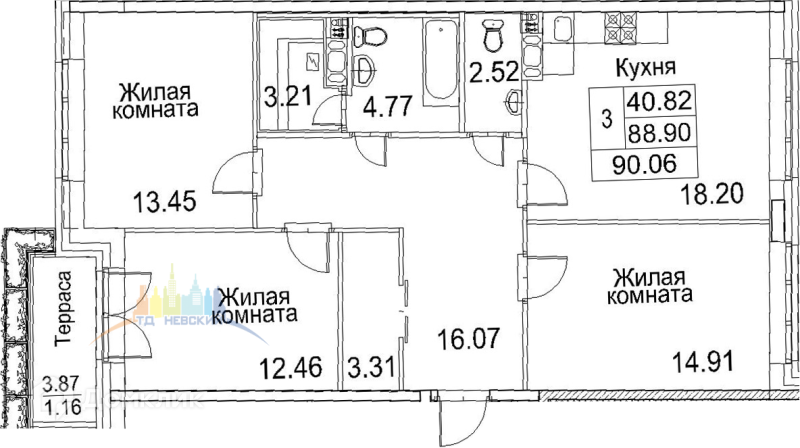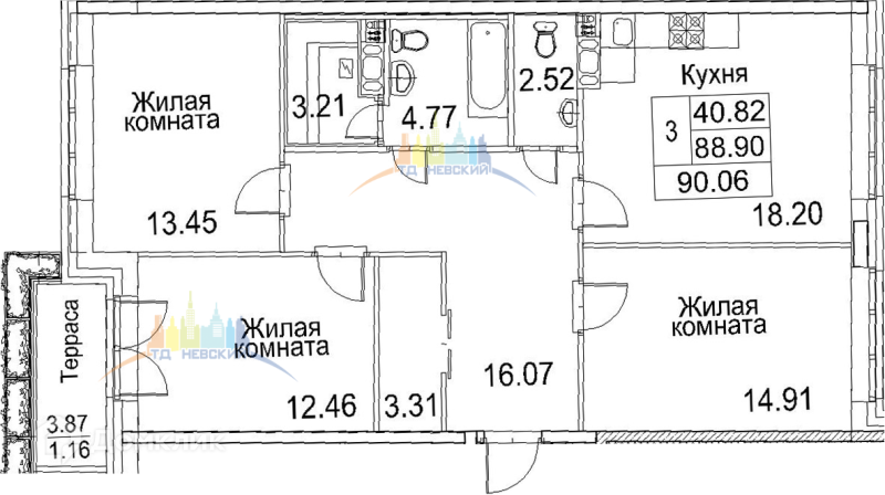 Общая площадь 90.06 м2