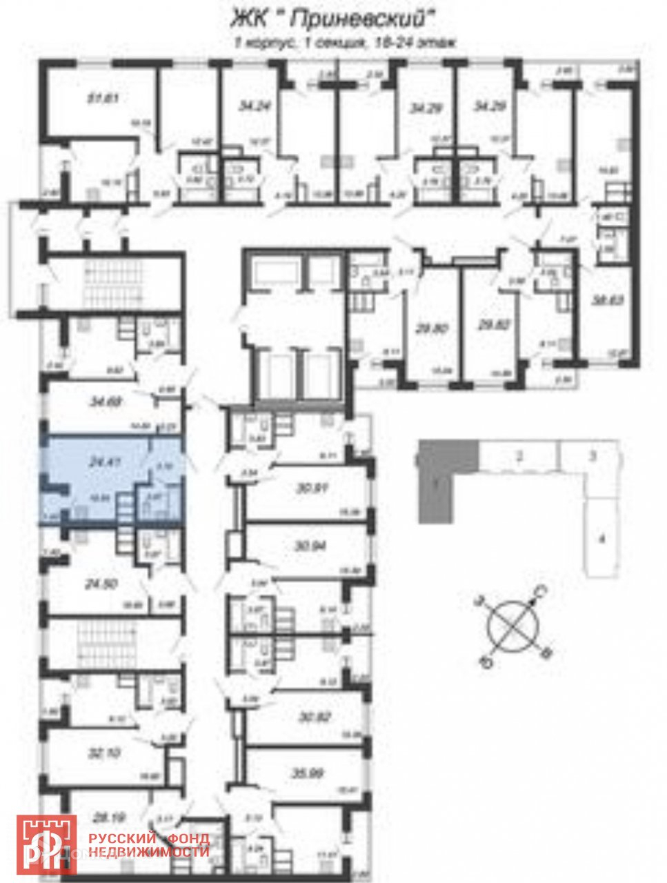Общая площадь 24.41 м2