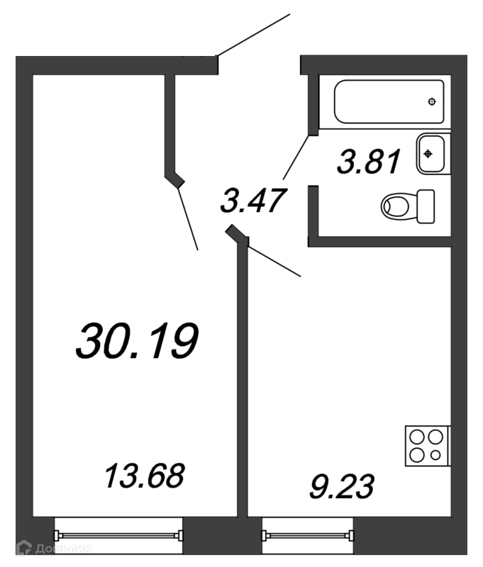 Общая площадь 30.19 м2