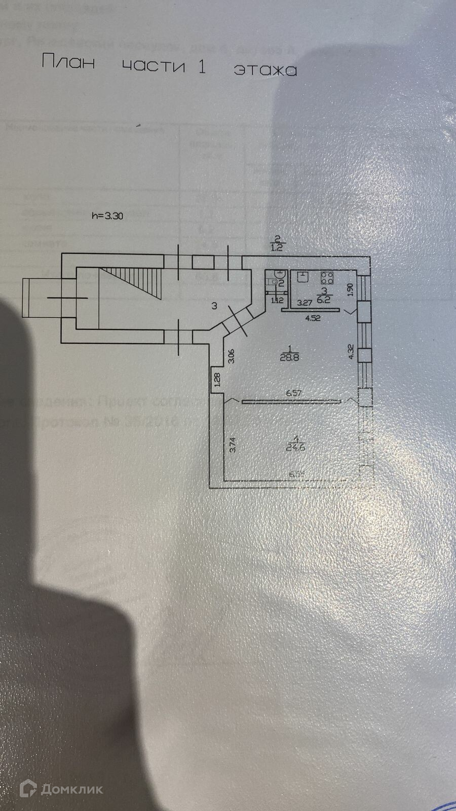 Высота потолков 3.32 м