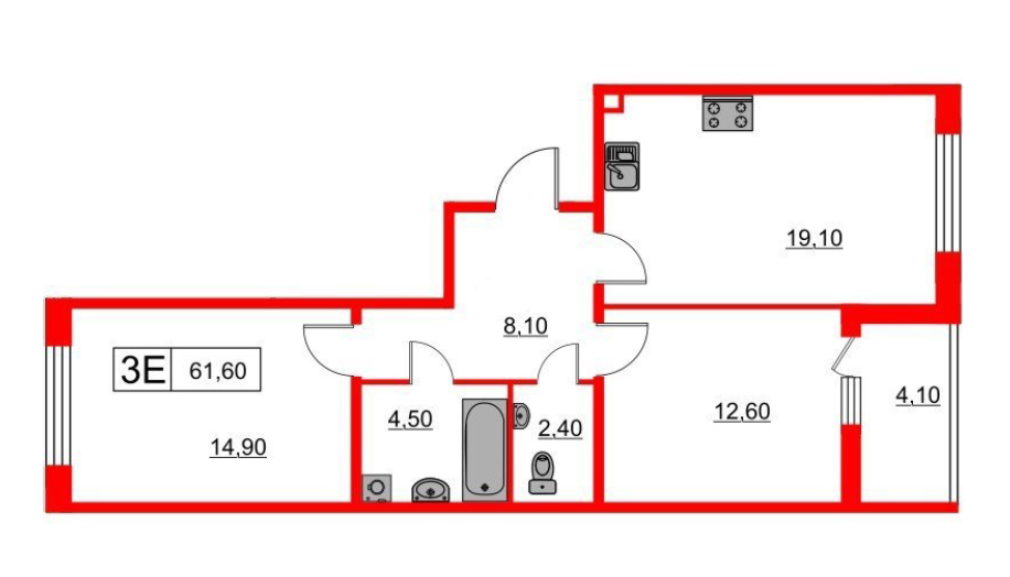 Общая площадь 61.6 м2