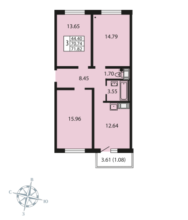 Общая площадь 70.7 м2