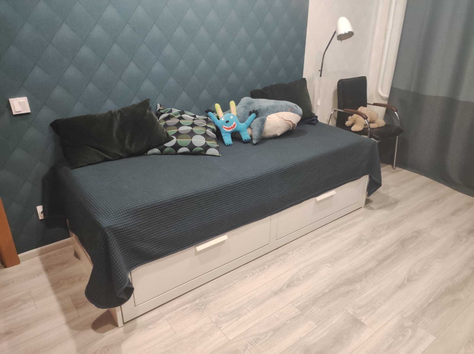 Развитая инфраструктура - магазины, детские сады, школы , поликлиники, шаговая доступность до метро , огромное количество зелени , зелёная ветка метро - 1 остановка и вы в центре города.