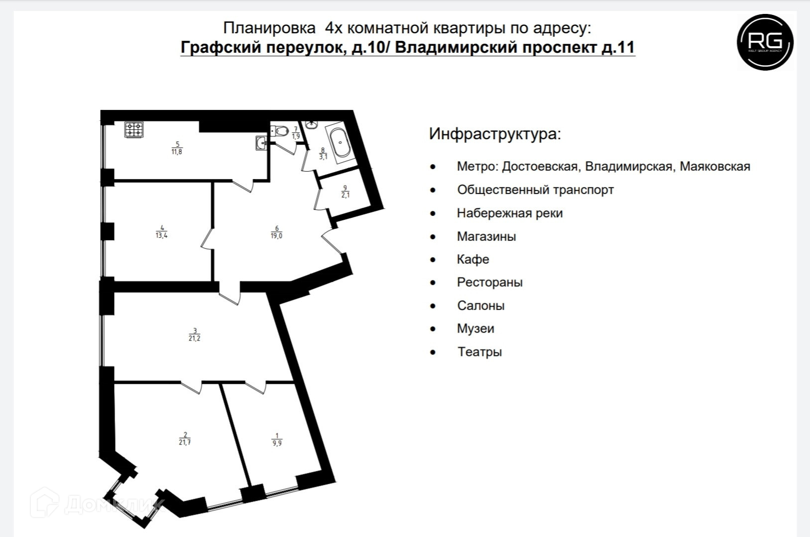 В шаговой доступности три станции метро Достоевская, Владимирская, Маяковская