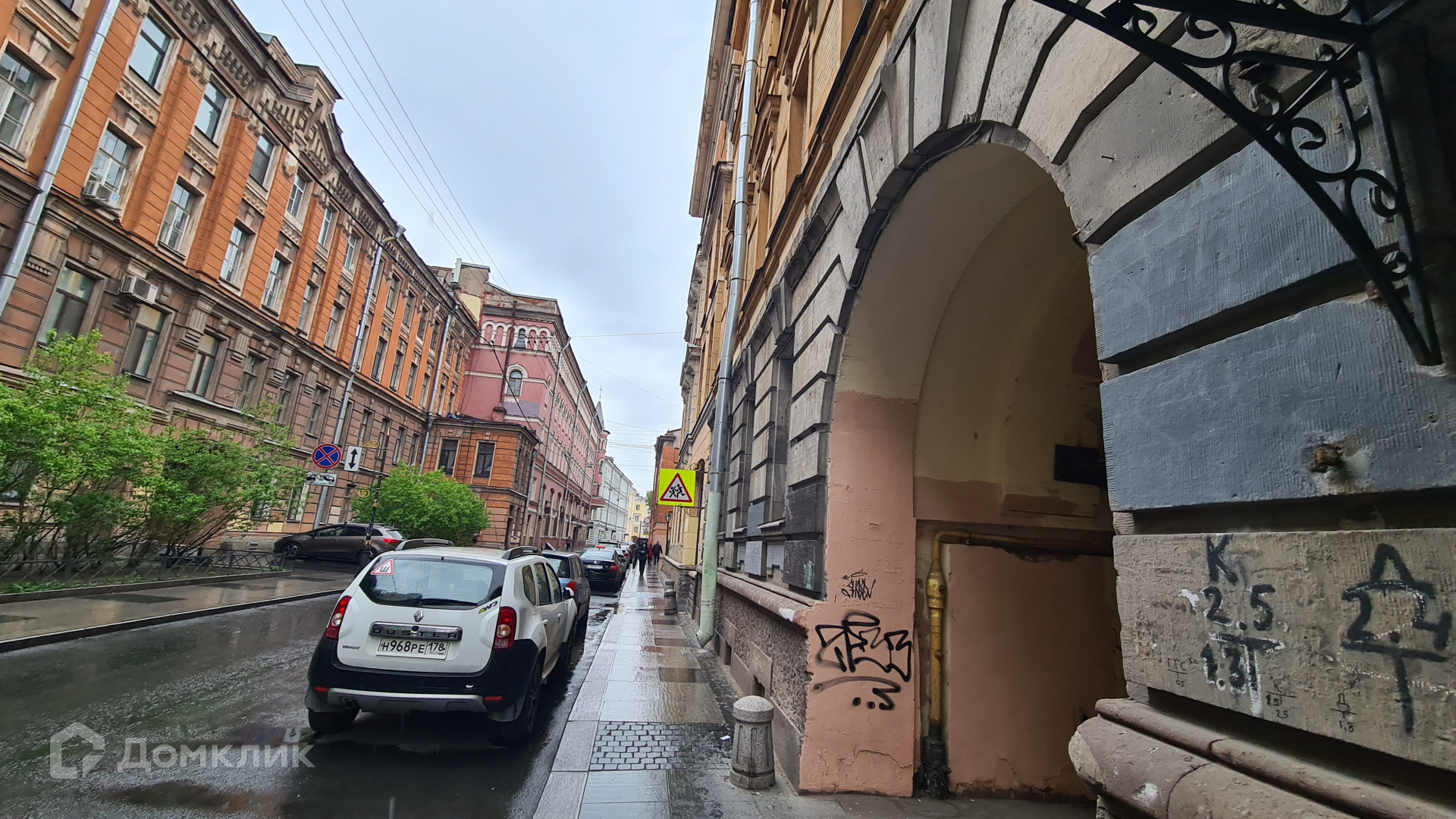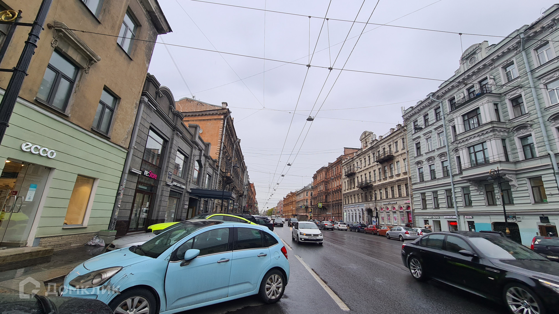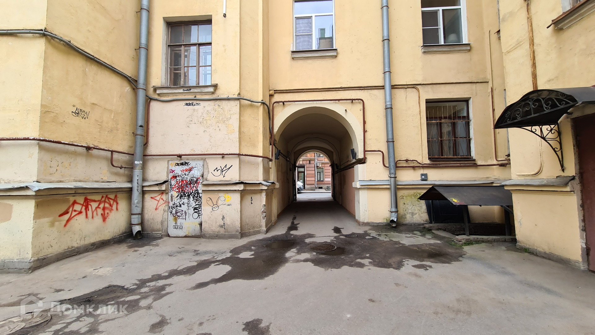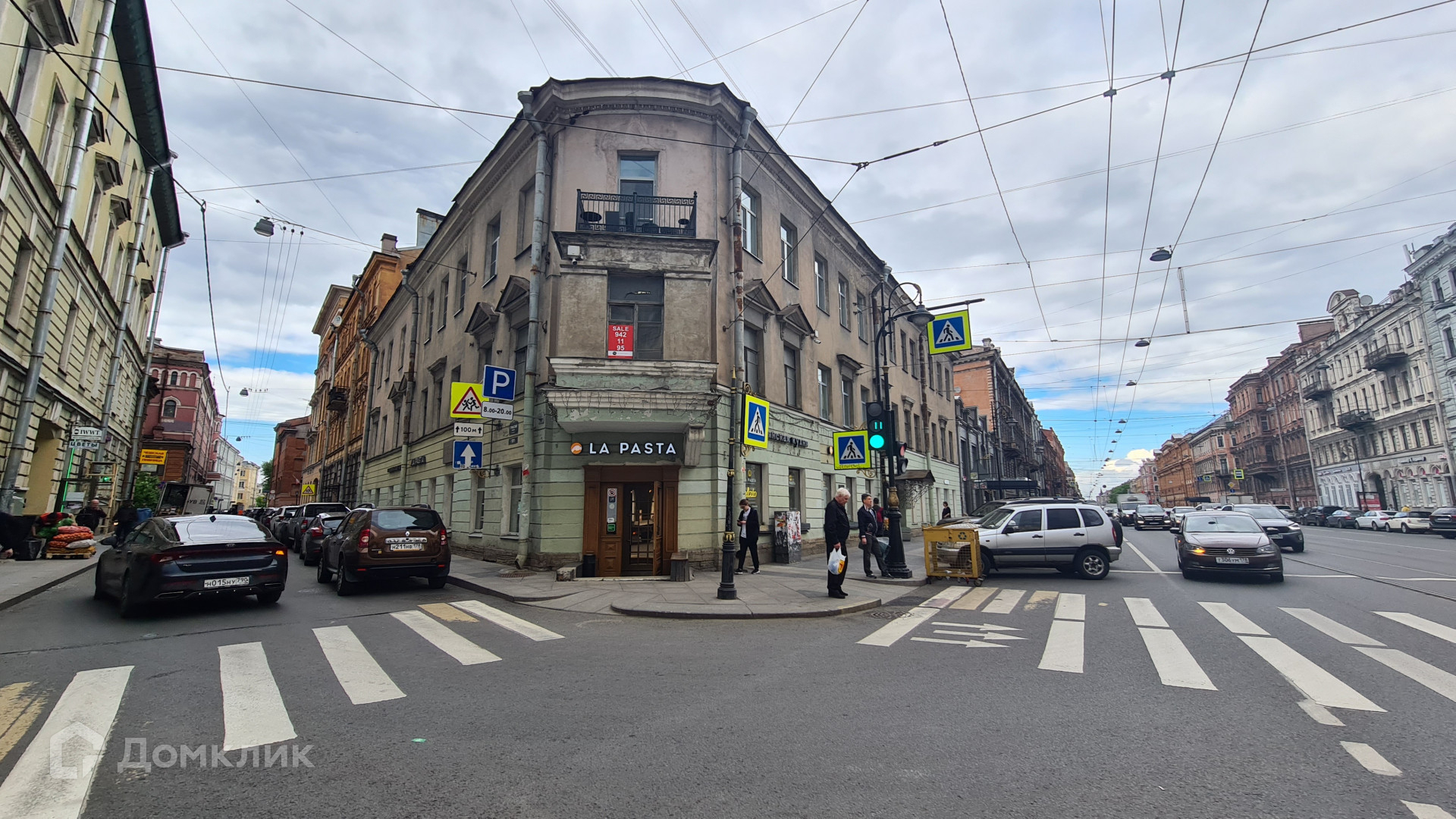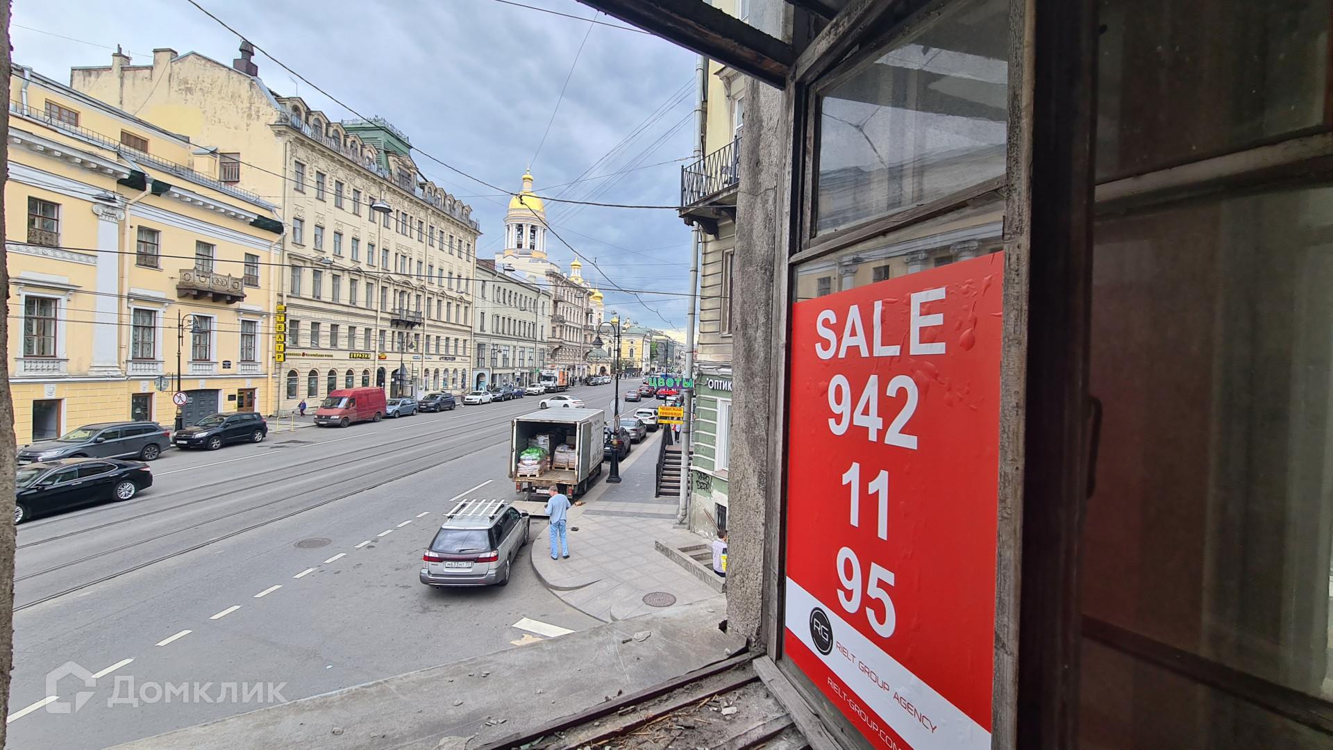 Окна выходят на Графский переулок и на Владимирский проспект.