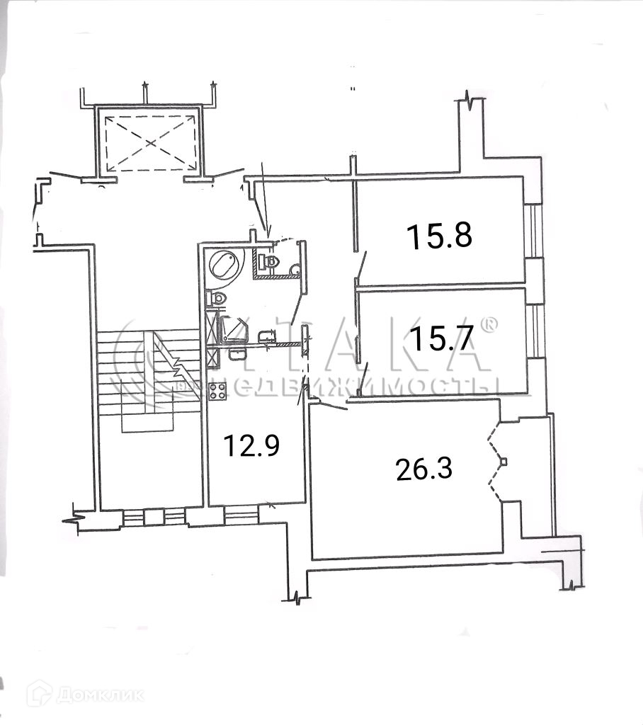 Жилая площадь 57.8 м2