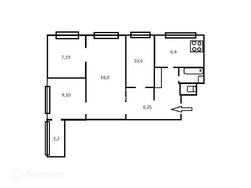 Балкон, лоджия 1 лоджия