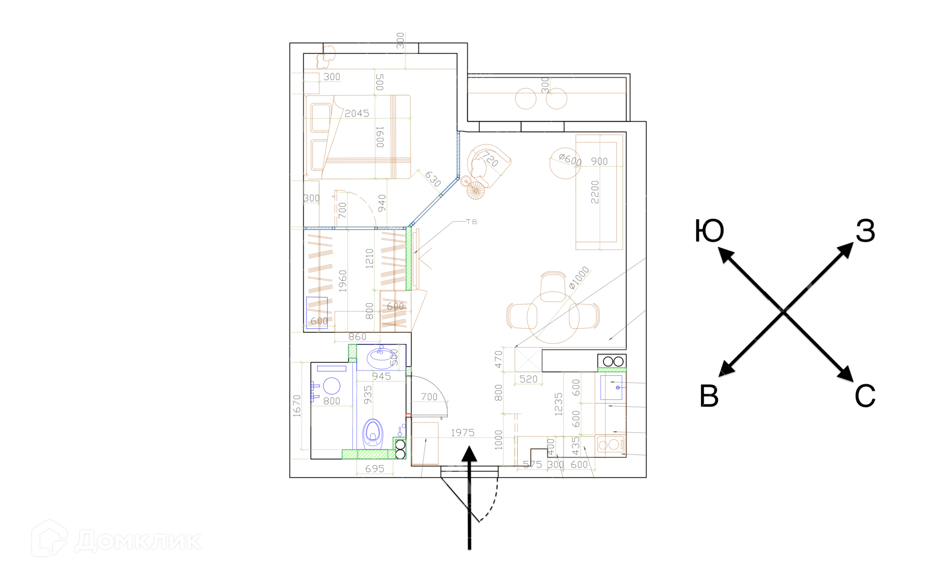 Общая площадь 42.6 м2