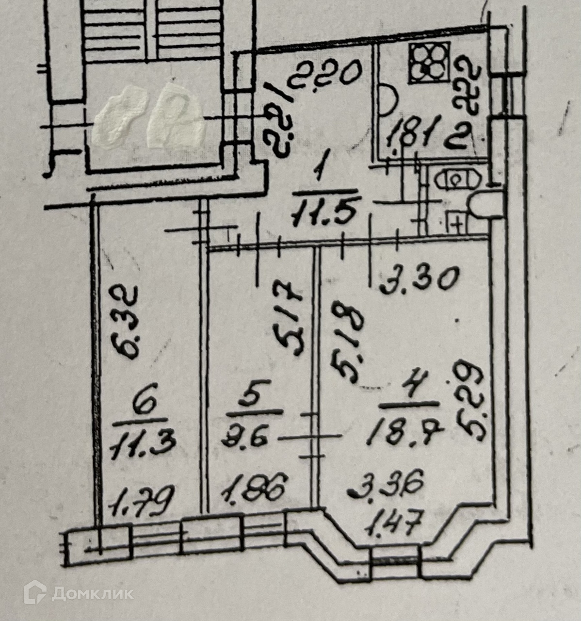 Жилая площадь 39.6 м2
