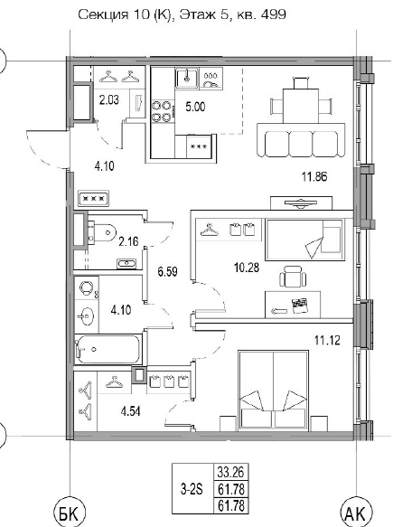 Общая площадь 61.78 м2