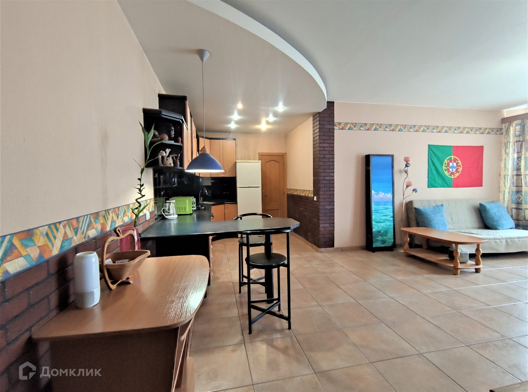 Просторная кухня-гостиная, площадью 33 кв м., идеально подойдёт для комфортного времяпрепровождения с большой компанией. Это пространство можно разделить и получится полноценная трехкомнатная квартира.