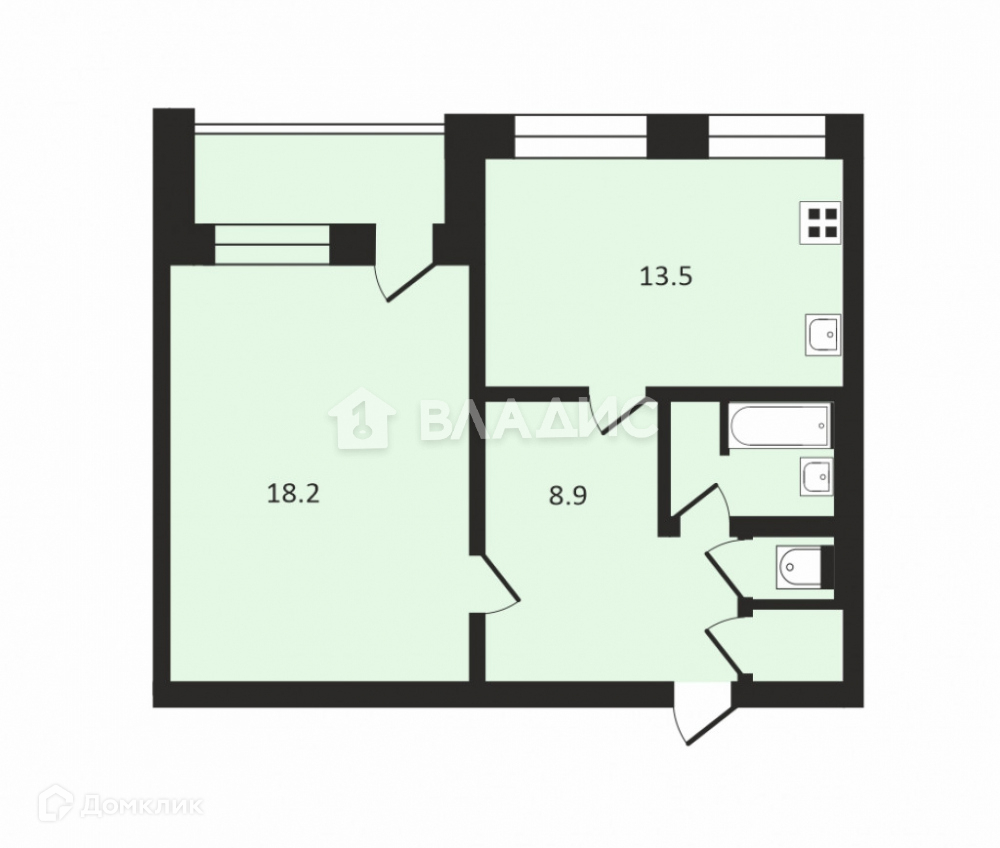 Жилая площадь 18.2 м2